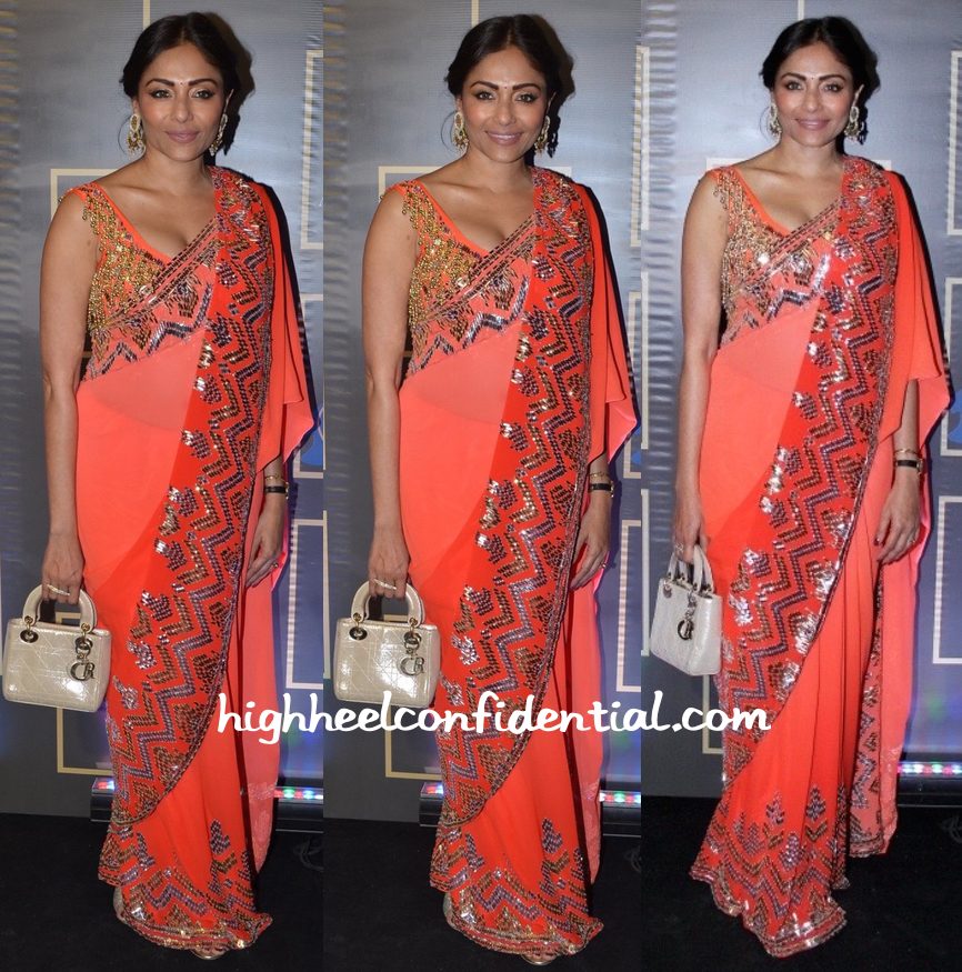 Buy Abu Jani And Sandeep Khosla For Vogue Chiffon Saree With Readymade Blouse At Amazon In Tamanna bhatia attended tamil trailer launch of baahubali in abu jani sandeep khosla pink saree that has white embroidered borders paired with white closed neck elbow length sleeves sheer net.