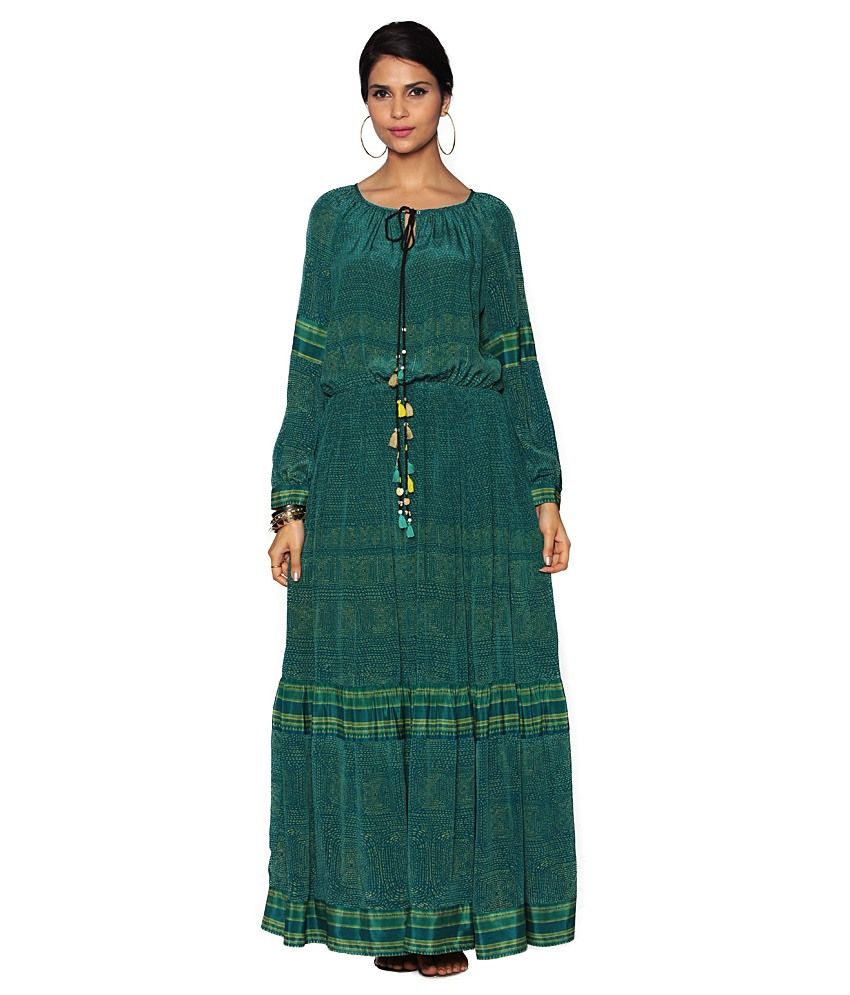 Ritu Kumar Long Dresses - Beige and green abstract printed short dress.