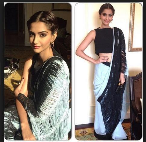 Sonam Kapoor In Black And White Saree : While husband anand looked dapper in a characoal grey suit, sonam raised the temperature with her bold black outfit.