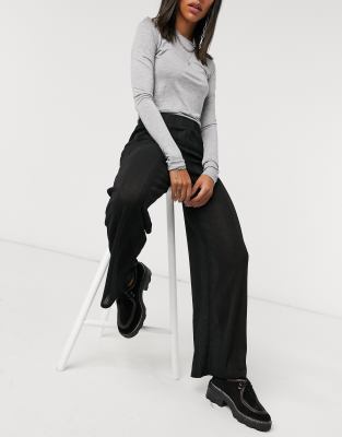 Vila Jersey Pants - Street style look fashion sweater skinny ringgs grey coat leather pants.